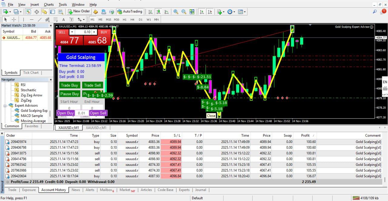 Gold Scalping Expert has demonstrated impressive performance when trading XAUUSD with a scalping strategy. The EA generated a profit of $1,587.34 thanks to its ability to enter orders accurately, close orders optimally, and take advantage of rapid price fluctuations. With high trading speed, good win rate, and fully automated operation, the EA helps traders make quick profits without manual intervention. Although there are swaps and commissions, if optimized, this is a powerful tool for effective and stable gold trading in the long term.